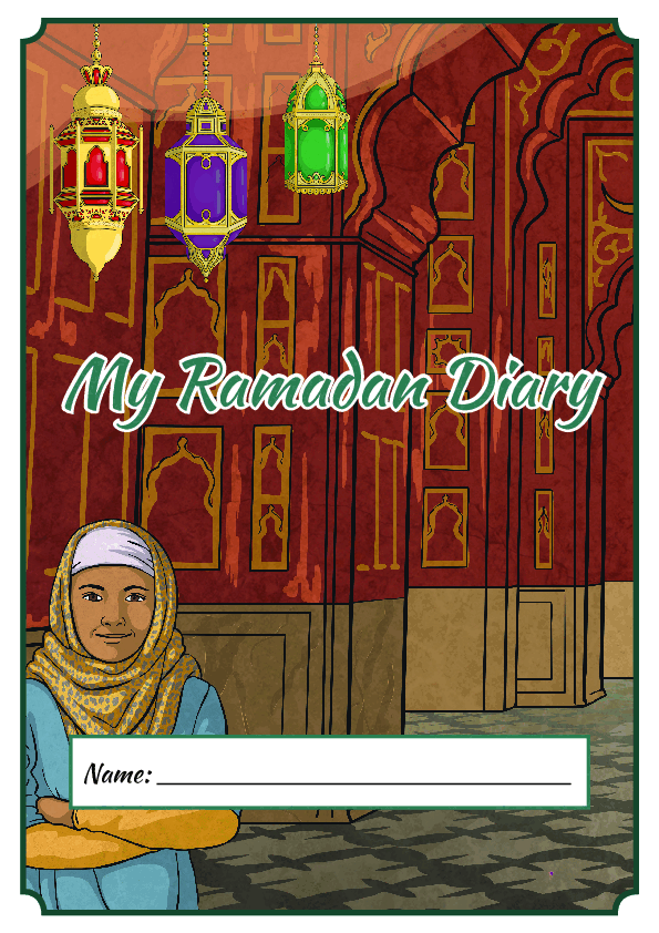 A beautiful daily diary that encourages children to track salah, fasting, duโa, and good deeds throughout Ramadan.